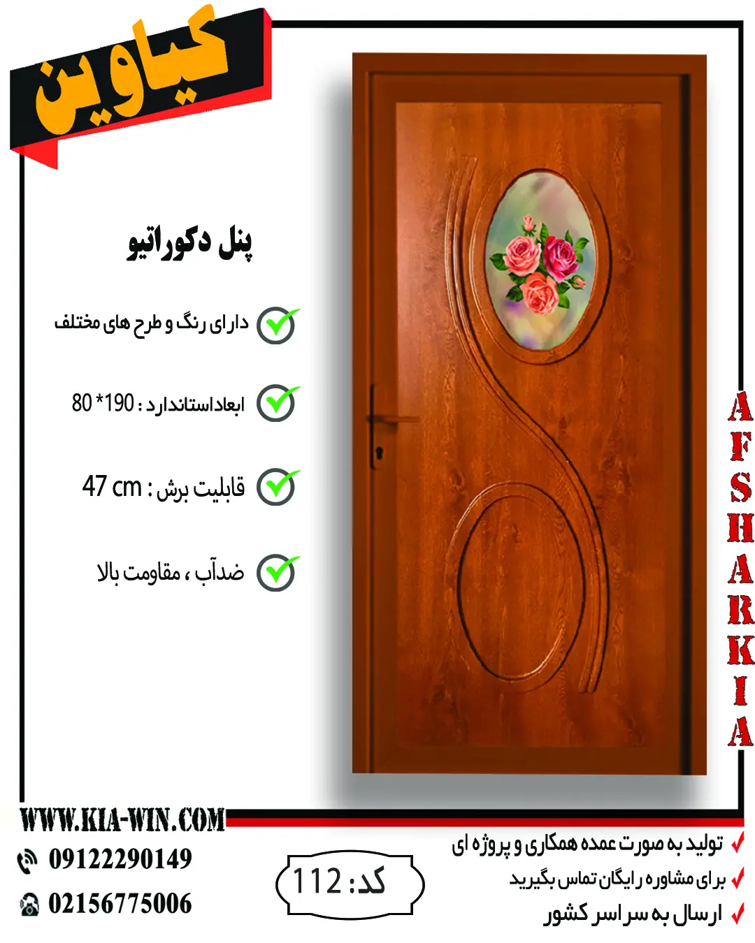 مشاهده تمامی طرحهای درب پنل دکوراتیو UPVCدرب پانل دکوراتیو UPVC | کد P-46