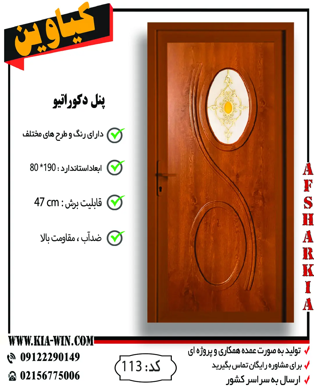 مشاهده تمامی طرحهای درب پنل دکوراتیو UPVCدرب پانل دکوراتیو UPVC | کد P-76