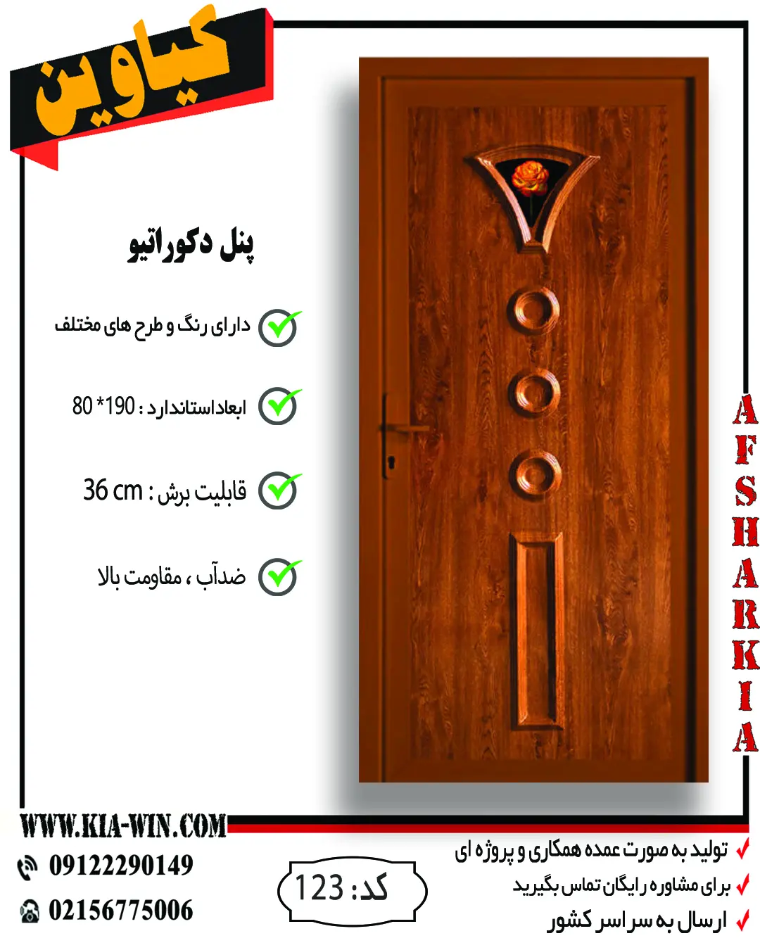 مشاهده تمامی طرحهای درب پنل دکوراتیو UPVCدرب پانل دکوراتیو UPVC | کد P-46