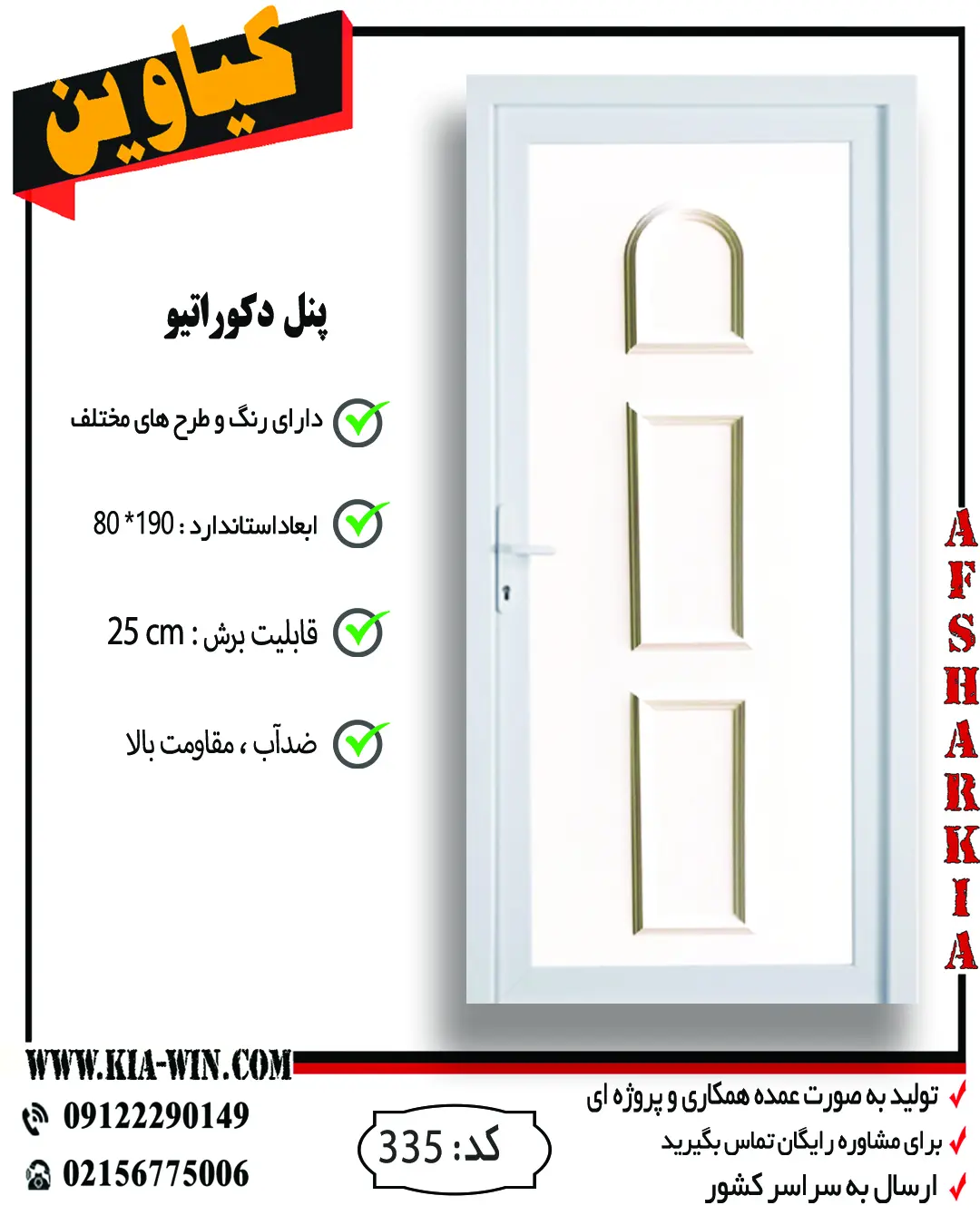 مشاهده تمامی طرحهای درب پنل دکوراتیو UPVCدرب پانل دکوراتیو UPVC | کد P-45