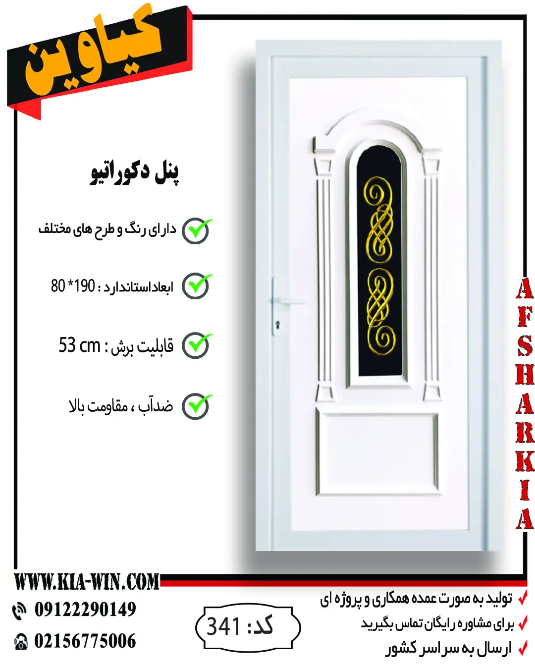 مشاهده تمامی طرحهای درب پنل دکوراتیو UPVCدرب پانل دکوراتیو UPVC | کد P-47